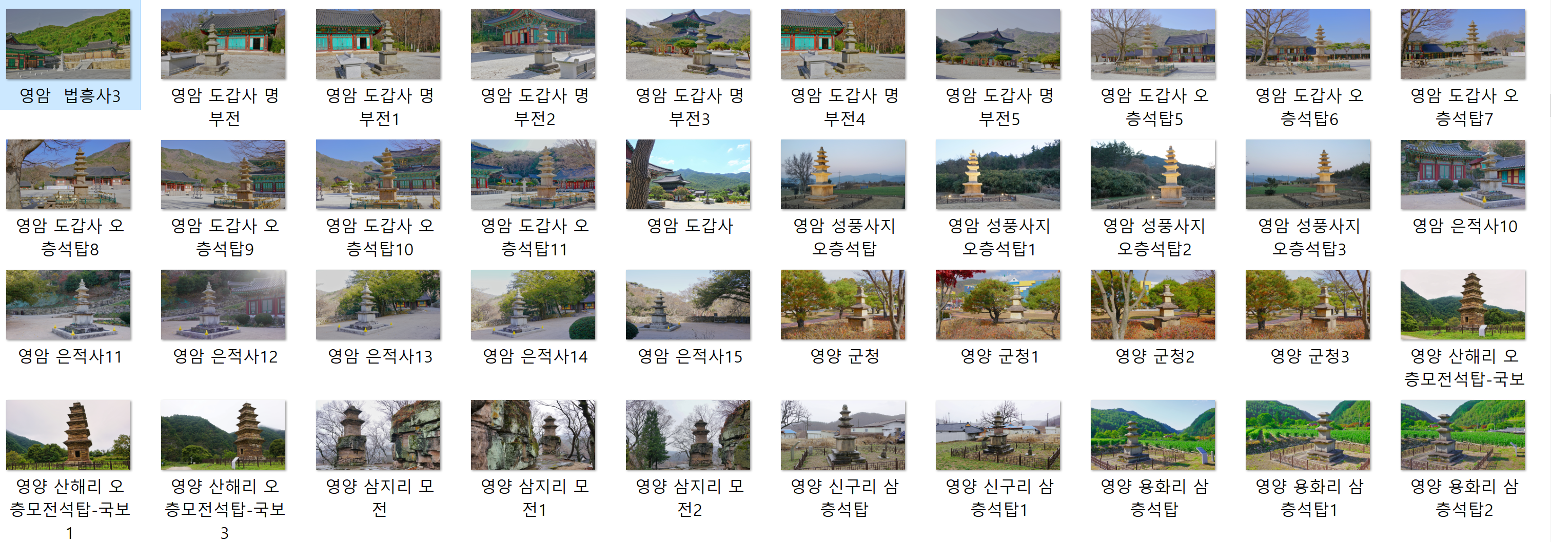 9. 영암 법흥사-영암 도갑사-영암 도갑사 오층석탑-영암 성풍사지 오층석탑-영암 은적사-영양 군청-영양 산해리 오층 모전석탑-영양 삼지리 모전석탑-영양 신구리 삼층석탑-영양 용화리 삼층석탑