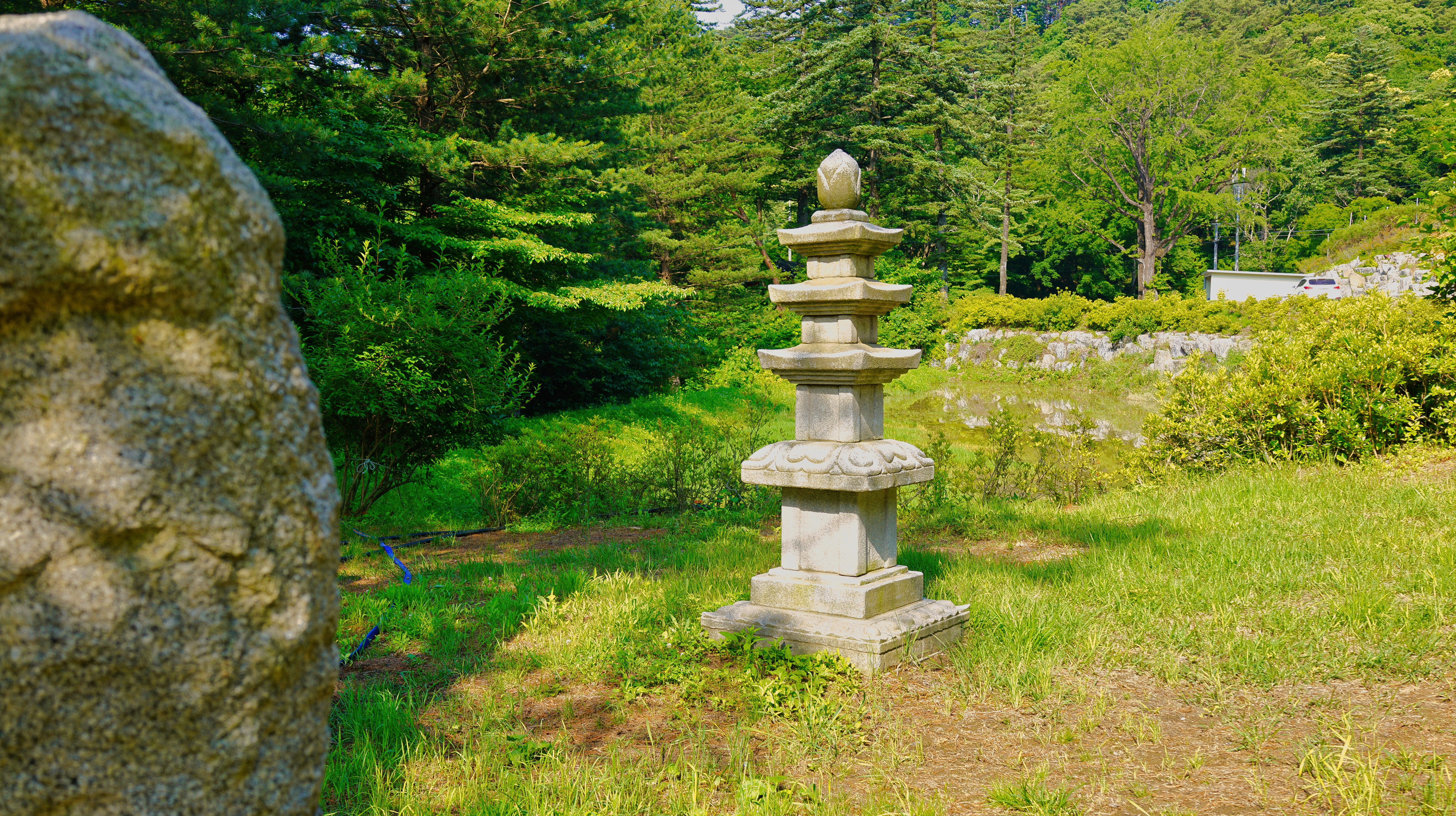 호수 옆의 중금리 탑도 혼자 보기가 너무도 아까웠다.