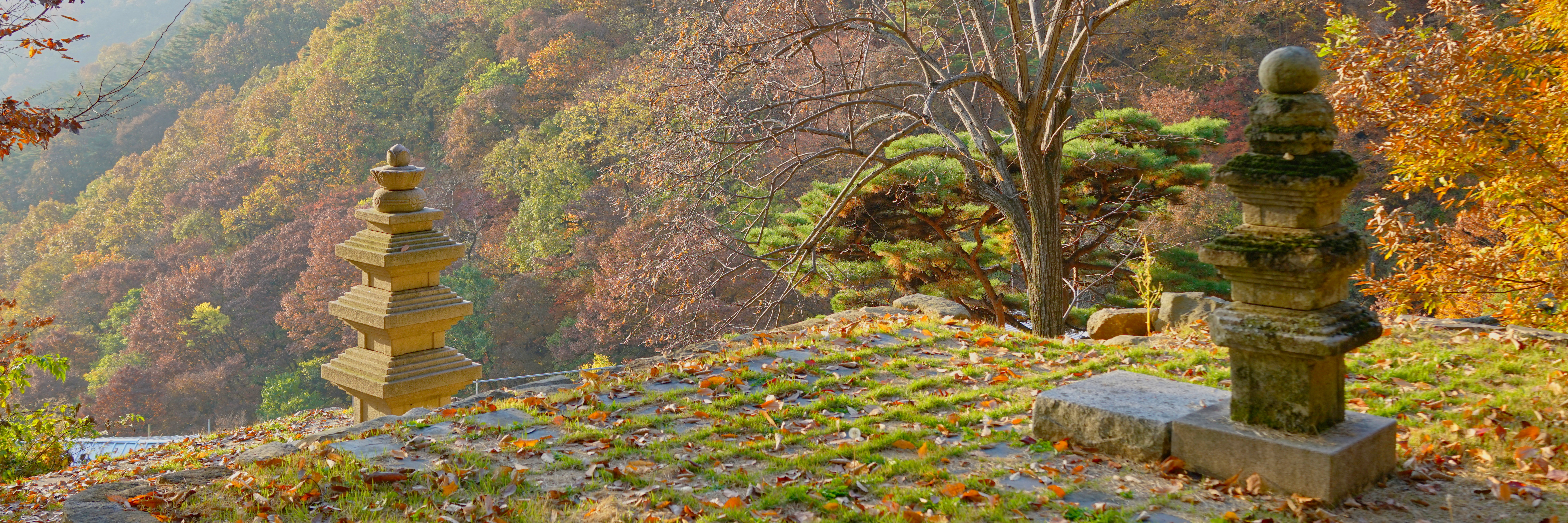 도량을 감싼 산봉우리와 아스라한 산 줄기.